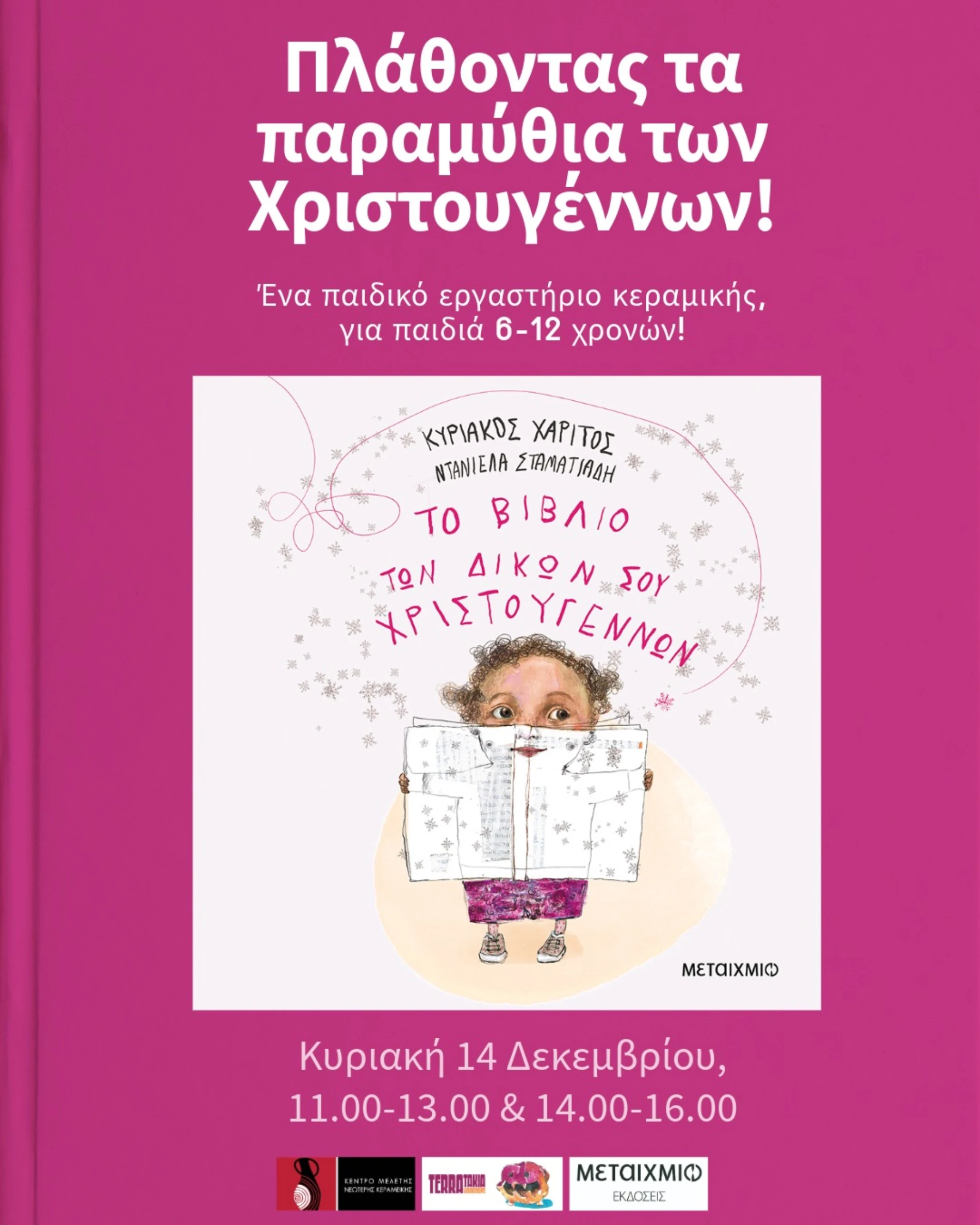 “Πλάθοντας τα παραμύθια των Χριστουγέννων” Τον Δεκέμβριο στα παιδικά εργαστήρια κεραμικής διαβάζουμε παραμύθια των εκδόσεων Ίκαρος. Θα εμπνευστούμε από…