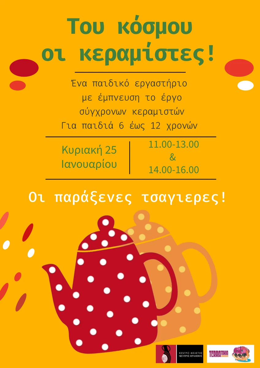 Μια σειρά εργαστηρίων, όπου τα παιδιά γνωρίζουν το έργο σύγχρονων κεραμιστών από όλο τον κόσμο! Ποιες τεχνικές χρησιμοποιούν; Πώς συνδυάζουν...