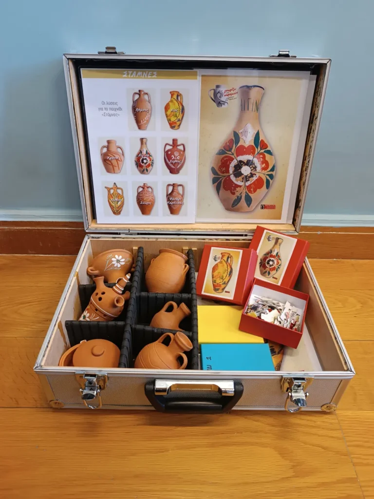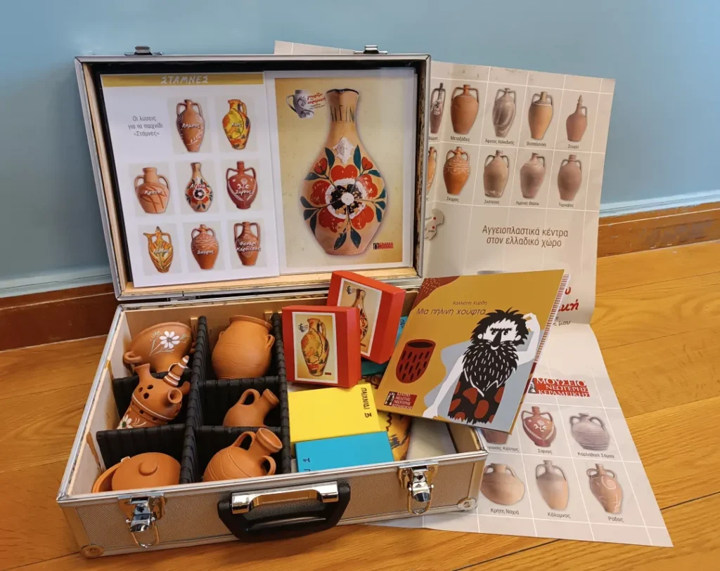 Η μουσειοσκευή του μουσείου σχεδιάστηκε με σκοπό τη διακίνησή της στα σχολεία της χώρας (με έμφαση σε απομακρυσμένες περιοχές). Με το εκπαιδευτικό υλικό που περιέχει (παιχνίδια, παζλ, βίντεο, κεραμικά αντικείμενα, κ.ά.) δίνει τη δυνατότητα στους εκπαιδευτικούς να εμπλουτίσουν το αναλυτικό πρόγραμμα του σχολείου εξοικειώνοντας τα παιδιά με βασικές πτυχές της νεότερης κεραμικής του τόπου μας.